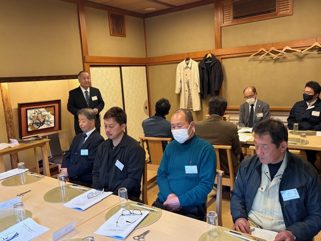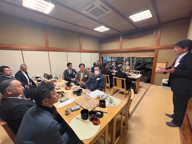 令和8年2月20日(金)、旭市の日本料理「あきの」にて、佐原・銚子合同支部懇談会を開催しました 。当日は、本部執行部役員および両支部の会員が出席し、本部での活動報告や地域の環境保全業務に関する意見交換および懇親会が行われました 。